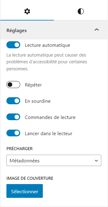 Cette option vous permet de sélectionner la partie de fichier vidéo qui sera téléchargée lors du chargement de la page ou de l’article. S’il peut être tentant de télécharger automatiquement la totalité du fichier, n’oubliez pas que cela peut ralentir la vitesse de chargement de votre page.